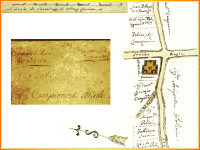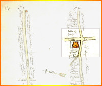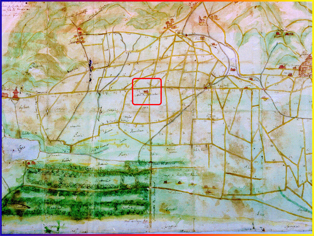 Diverse cartografie risalenti al 1700, con l’indicazione della Chiesa, delle strade e delle proprietà terriere.